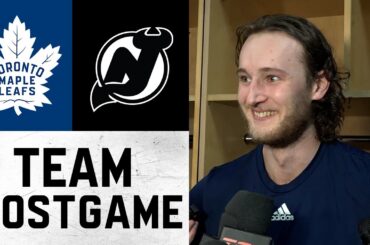 Les joueurs et l’entraîneur parlent aux médias après la victoire 4-2 des Leafs contre les Devils du New Jersey jeudi.…