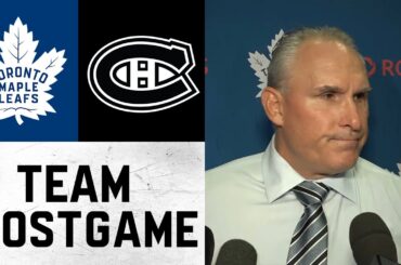 Les joueurs et l’entraîneur parlent avec les médias après la défaite 1-0 des Leafs contre les Canadiens de Montréal mercredi.…