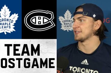 Les joueurs et l’entraîneur parlent avec les médias après la victoire 2-1 des Leafs contre les Canadiens de Montréal jeudi.…