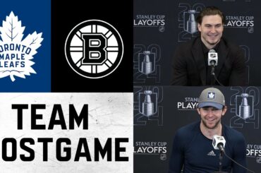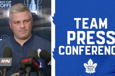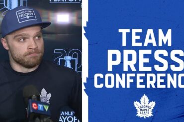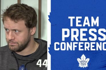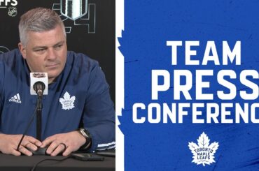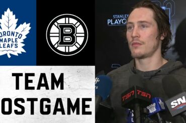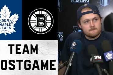 Les joueurs et l’entraîneur s’entretiennent avec les médias à la suite de la défaite 4-2 des Leafs contre les Bruins…