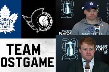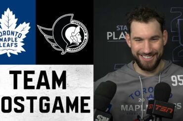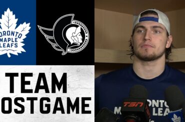L’entraîneur-chef et les joueurs parlent avec les médias après la victoire des Leafs 3-2 en prolongation contre les Sénateurs d’Ottawa…