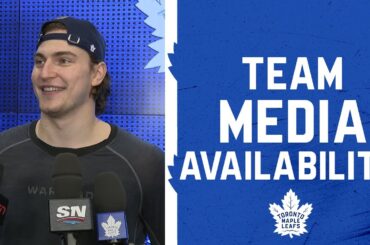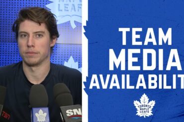 Mitchell Marner, Matthew Knies, Bobby McMann et l’entraîneur-chef Craig Berube s’adresse aux médias après la pratique de Thuesday. 0:00 Mitch…