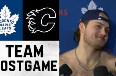 L’entraîneur et les joueurs parlent avec les médias après la victoire 6-3 des Leafs sur les Flames de Calgary mardi.…