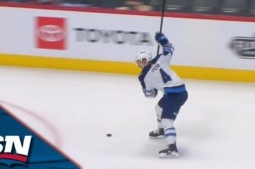 Regardez Neal Pionk des Jets de Winnipeg lancer un tir frappé et le faire exploser devant le gardien de but…