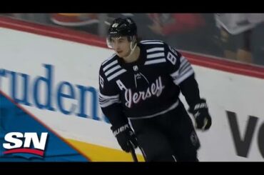 Jack Hughes ramasse une rondelle dans la zone neutre et obtient une échappée contre Igor Shesterkin pour marquer le premier…