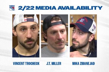 Les Rangers de New York attribuent Vincent Trocheck, JT Miller et Mika Zibanejad parlent avec les médias après la défaite…