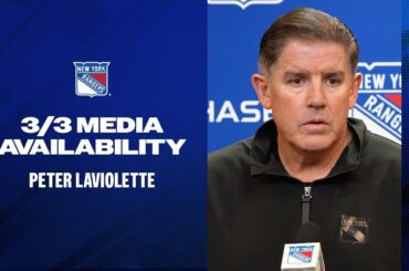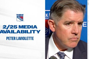 L’entraîneur-chef des New York Rangers, Peter Laviolette, discute des combinaisons de lignes et des préparatifs pour le match de demain…