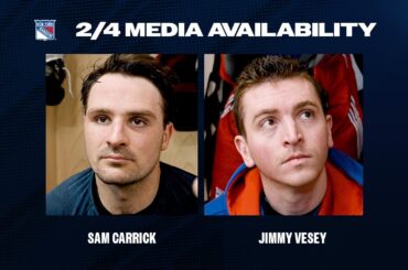 L’attaquant des New York Rangers, Sam Carrick, discute du retour de l’attaquant Jimmy Vesey à l’alignement, l’attaquant Jimmy Vesey discute…