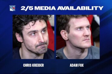 L’attaquant des Rangers de New York Chris Kreider discute des matchs à venir avant la pause et le défenseur Adam…