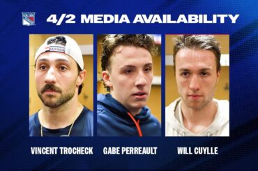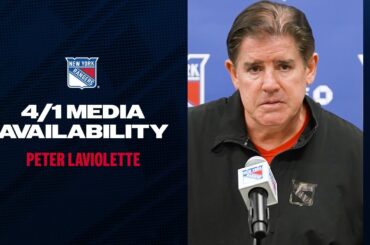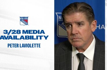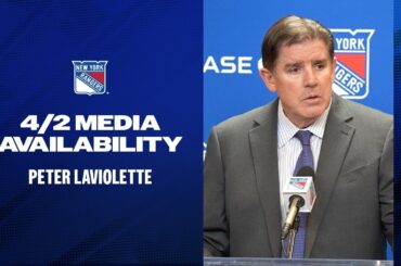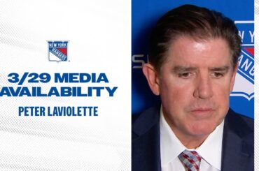 L’entraîneur-chef des Rangers de New York, Peter Laviolette, discute des débuts de Gabe Perreault et du jeu de puissance de…