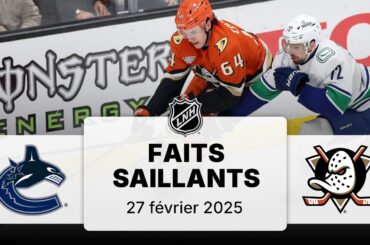Voyez tous les faits saillants du match entre les Canucks de Vancouver et les Ducks d’Anaheim au Honda Center
