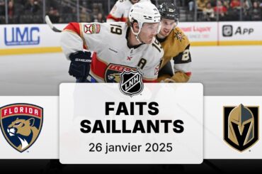 Voyez tous les faits saillants du match de dimanche opposant les Panthers de la Floride aux Golden Knights de Vegas.