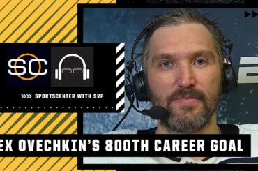 Alex Ovechkin rejoint SportsCenter avec Scott Van Pelt pour réagir après avoir marqué son 800e but en carrière, le troisième…