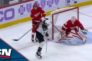 Regardez Nick Schmaltz, des Coyotes de l’Arizona, montrer sa coordination œil-main stellaire avec une déviation impressionnante qui sort du poteau…
