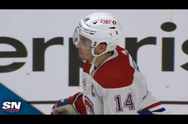 Regardez le capitaine des Canadiens de Montréal, Nick Suzuki, décocher un tir parfait sous un angle presque impossible pour mettre…