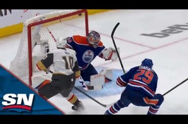Regardez l’attaquant des Golden Knights de Vegas Nicolas Roy se battre contre une défense difficile des Oilers d’Edmonton avant de…