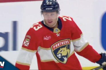 Regardez Aleksander Barkov des Panthers de la Floride examiner la glace avant de repérer Carter Verhaeghe avec une passe arrière…