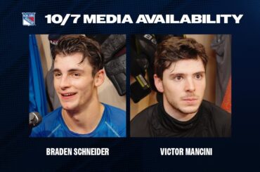 Le défenseur des Rangers de New York Braden Schneider discute de l’alchimie de l’équipe et le défenseur Victor Mancini discute…