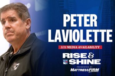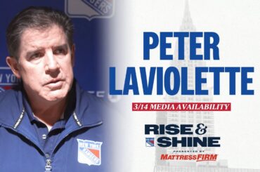 L’entraîneur-chef des Rangers de New York, Peter Laviolette, discute des efforts de l’équipe lors de matchs consécutifs et du jeu…