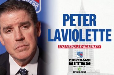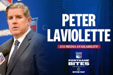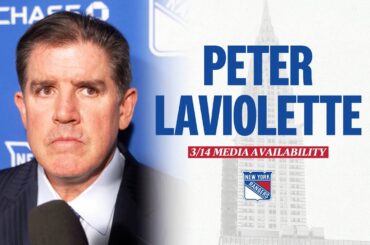 L’entraîneur-chef des Rangers de New York, Peter Laviolette, s’entretient avec les médias après la défaite de l’équipe contre le Lightning…