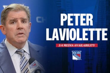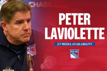 L’entraîneur-chef des Rangers de New York, Peter Laviolette, discute de l’ajout de Chad Ruhwedel et de la défense de l’équipe…