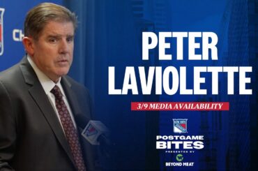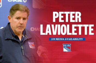L’entraîneur-chef des Rangers de New York, Peter Laviolette, s’entretient avec les médias après la défaite de l’équipe contre les Panthers…