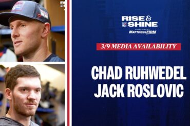 Le défenseur des Rangers de New York Chad Ruhwedel et l’attaquant Jack Roslovic présentent un aperçu du match de ce…