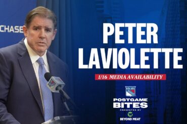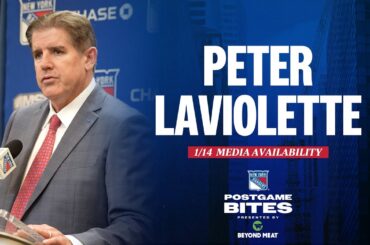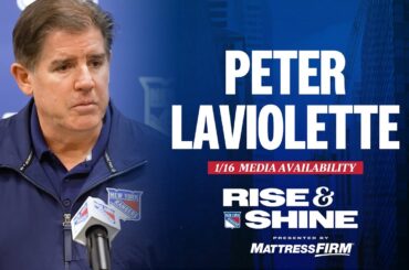 L’entraîneur-chef des Rangers de New York, Peter Laviolette, discute de la reprise après la défaite d’hier et des efforts défensifs…
