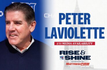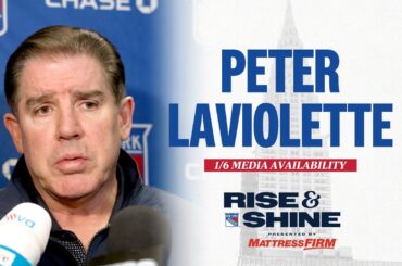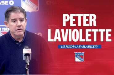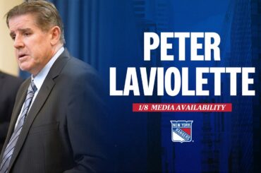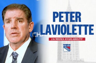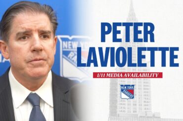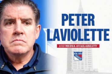 L’entraîneur-chef des Rangers de New York, Peter Laviolette, s’entretient avec les médias après la défaite de l’équipe contre les Canucks…
