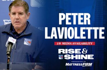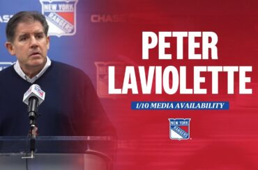 Après l’entraînement du 10 janvier, l’entraîneur-chef des Rangers de New York, Peter Laviolette, discute de l’entraînement d’aujourd’hui et de l’échec-avant…
