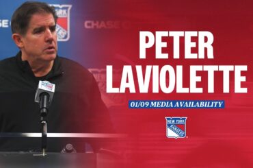L’entraîneur-chef des Rangers de New York, Peter Laviolette, s’adresse aux médias après l’entraînement du 9 janvier. Il a discuté de…