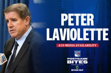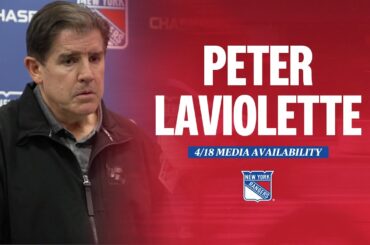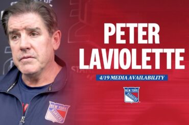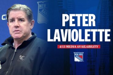 L’entraîneur-chef des Rangers de New York, Peter Laviolette, discute du calendrier d’entraînement de l’équipe avant les séries éliminatoires et de…