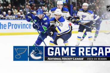 Faits saillants prolongés des Blues de St. Louis contre les Canucks de Vancouver 00:00 1ère période 02:25 2e période 03:46…