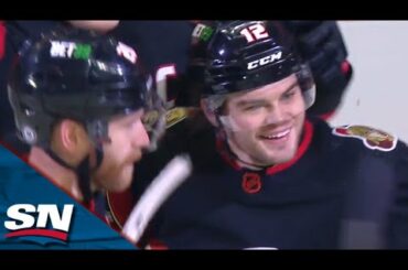 Regardez Alex DeBrincat renvoyer la rondelle à la maison sur son revers pour marquer un but en avantage numérique pour…