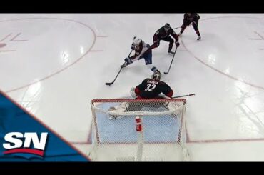 Regardez Erik Johnson lancer Alex Newhook sur une échappée avec une passe extensible, puis il va marquer sur Antti Raanta…