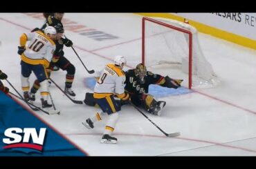 L’attaquant des Flames Elias Lindholm prend lui-même le dessus sur le 2 contre 1 et bat Spencer Martin, donnant une…