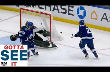 Regardez comment l’attaquant du Lightning de Tampa Bay, Brayden Point, dévie la rondelle dans les airs avec son patin, puis…