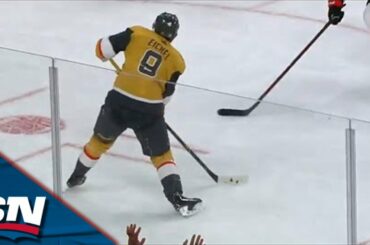 Regardez l’attaquant des Golden Knights de Vegas Jack Eichel attraper une rondelle déviée et la tirer devant le gardien de…