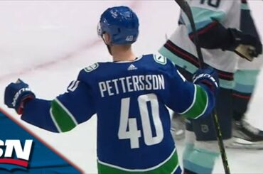 Regardez alors que l’attaquant des Canucks de Vancouver Elias Pettersson snipe un tir sur réception mis en place par JT…