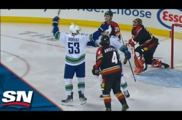 Regardez Bo Horvat et Conor Garland marquer des buts consécutifs en seulement 34 secondes pour donner aux Canucks une avance…
