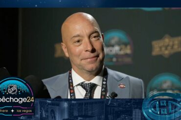 Le directeur général des Canadiens, Kent Hughes, s’adresse aux médias à Las Vegas après le premier tour du repêchage de…