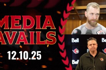 Écoutez l’attaquant Claude Giroux et l’entraîneur-chef Travis Green après les activations matinales d’entraînement et hors glace des Sénateurs au Centre…