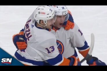Regardez l’attaquant des Islanders de New York Bo Horvat arracher un tir sur réception depuis la zone haute devant le…