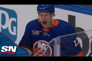 Regardez les attaquants des Islanders de New York Kyle Palmieri et Matt Martin remporter la première victoire de leur équipe…