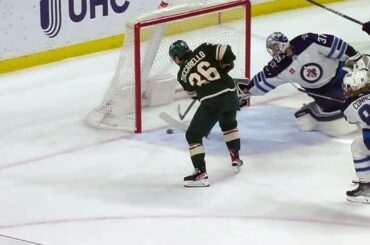Le gardien des Jets Connor Hellebuyck réalise un incroyable arrêt à la pagaie pour contrer Mats Zuccarello et garder Winnipeg…