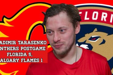 L’attaquant des Panthers de la Floride Vladimir Tarasenko s’exprime après que son équipe a battu les Flames de Calgary en…