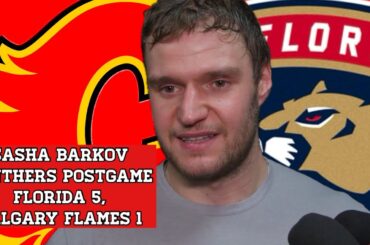 Le capitaine des Panthers de la Floride, Aleksander Sasha Barkov, s’exprime après que son équipe a battu les Flames de…