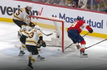 L’attaquant des Bruins Brad Marchand marque son 4e but de la série, puisant dans le rebond lâche après son tir…