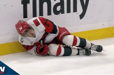 Regardez l’attaquant des Hurricanes de la Caroline Seth Jarvis être aidé hors de la glace en prolongation contre les Panthers…