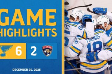 Faits saillants d’une victoire 6-2 des Blues contre les Panthers de Floride le 20 décembre 2025. Jake Neighbours et Robert…